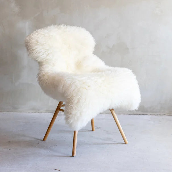 Een hoge kwaliteit schapenvacht in de kleur naturel/wit. Een schapenvacht houdt u lekker warm in de winter, maar blijft koel in de zomer, door de uitmuntende warmteregulering. Het Texelse klimaat verleent de vacht een stevige en veerkrachtige structuur, die doorzitten voorkomt en gewrichtspijn kan verlichten.